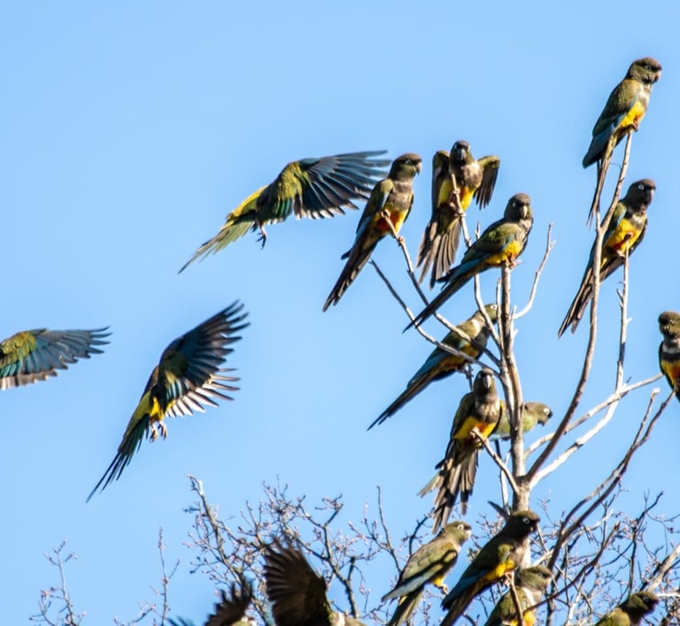 Observa loros tricahue en su hábitat natural, una especie endémica de Chile central en Parque Nacional Tricahue